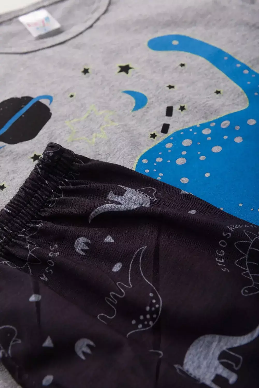 O Pijama Infantil Masculino Dino é perfeito para iluminar as noites dos pequenos com muito estilo e conforto.